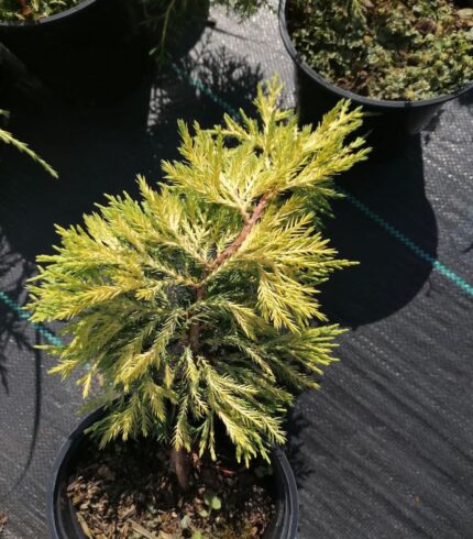 вечнозеленый кустарник высотой около 60 см и шириной до 1,5м. Крона плотная, плоская, распростертая. Побеги тонкие, свисающие до земли и хорошо укореняющиеся. Листья темно-зеленые, мелкие, блестящие, эллиптической или овальной формы.